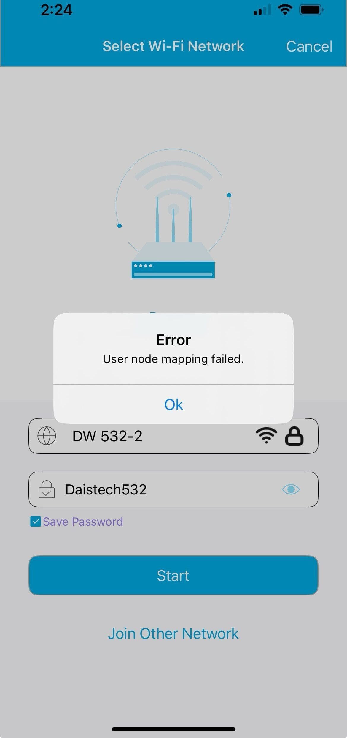 Wi-Fi Authentication failed: The Wi-Fi credentials provided are invalid. Restart the provisioning process and ensure the SSID and password are correct.